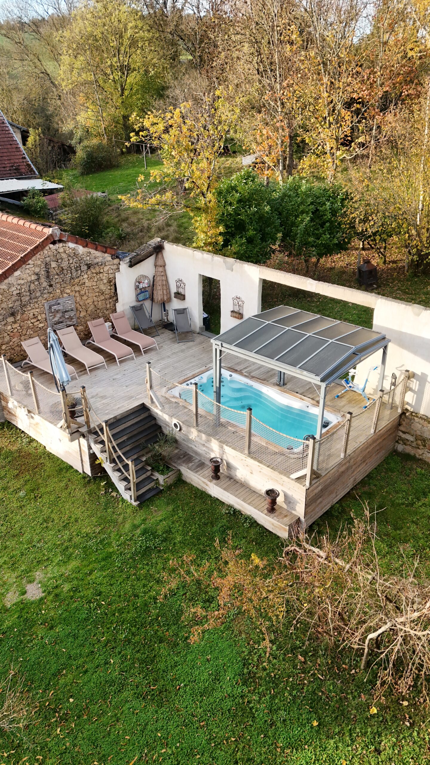 Niché au fond d’une impasse discrète, dans un hameau de seulement trois maisons, ce lieu intime, offre deux terrasses sans vis-à-vis : l’une pour savourer vos repas face à la douceur de la campagne environnante, l’autre pour s’abandonner aux bienfaits du spa en toute quiétude.